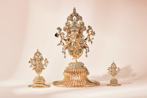 The Lotus Blossom – แรงบันดาลใจจาก ดอกบัวตูมและดอกบัวที่บานสะพรั่ง ซึ่งเกิดจากใต้น้ำ เชื่อว่าเป็นดอกไม้ที่สะอาดและบริสุทธิ์ อนึงว่าเป็นดอกบัวที่ชูช่ออวดความงามอยู่เหนือผิวน้ำพร้อมจะผลิบานรับแสงอรุณ ราวกับความรักที่กำลังเติบโต พร้อมเจอกับคนรักที่จริงใจและเติมเปี่ยมไปด้วยพลังแห่งรักอันบริสุทธิ์ที่พระแม่ลักษมีมอบให้ รวมถึงยังมี Pink Opal ที่แสดงถึงความรัก ความอุดมสมบูรณ์และเพชรที่ทอประกายส่องแสงแห่งทรัพย์สิน เงินทองที่จะเพิ่มพูนขึ้นเรื่อย ๆ ไม่รู้จบ ราวกับพระแม่ลักษมีที่หยิบยื่นและมอบทรัพย์สมบัติให้แก่ผู้ที่ศรัทธาDESCRIPTION