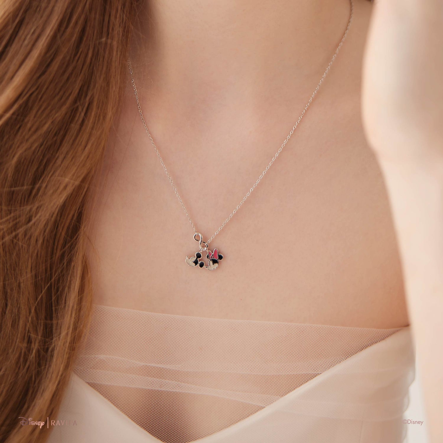 Mickey and Minnie Infinity Silver Necklace