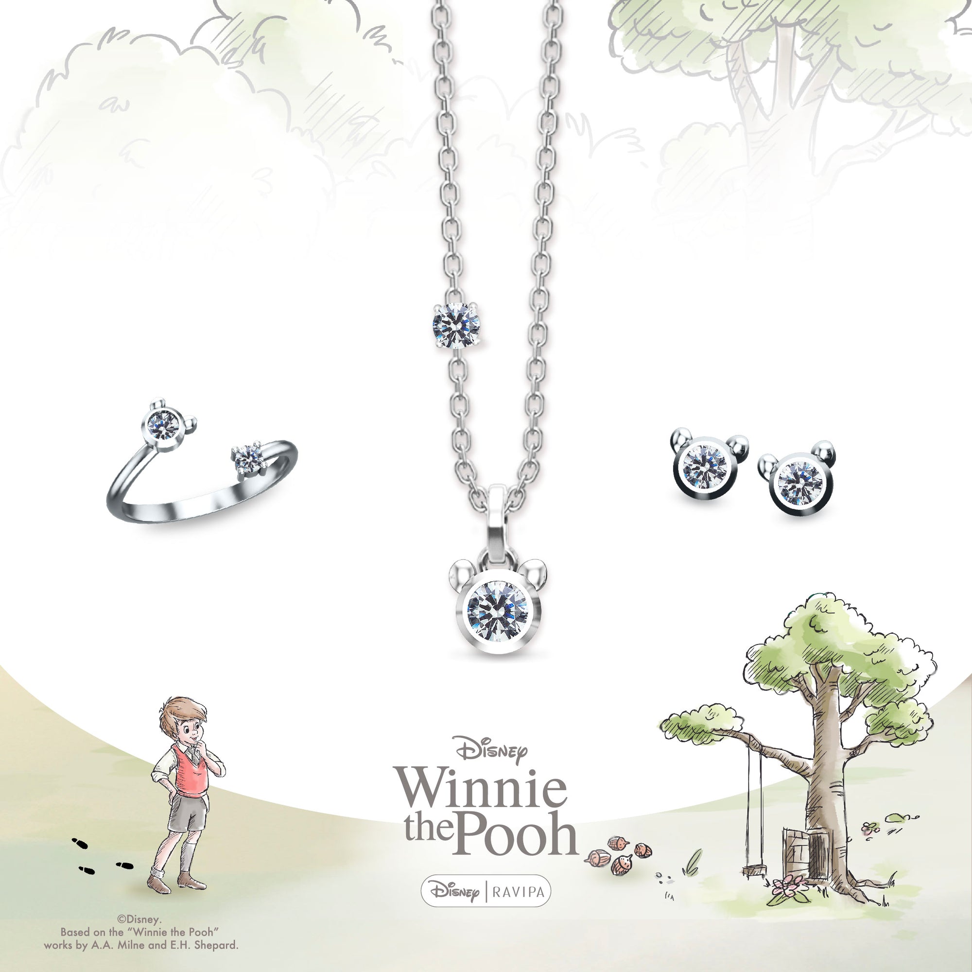Winnie The Pooh Silver Diamond Necklace
